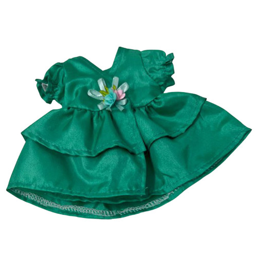 Green wrap style doll dress is synthetic silk. Easy to dress on the doll as it wraps to the front and closes with Velcro. Cluster of ribbon flowers at the center waist. This green synthetic silk wrap dress is handmade and machine washable. Shown on a Lalaloopsy doll who is approximately 12 inches tall. This listing is for one doll dress, the doll is not included.