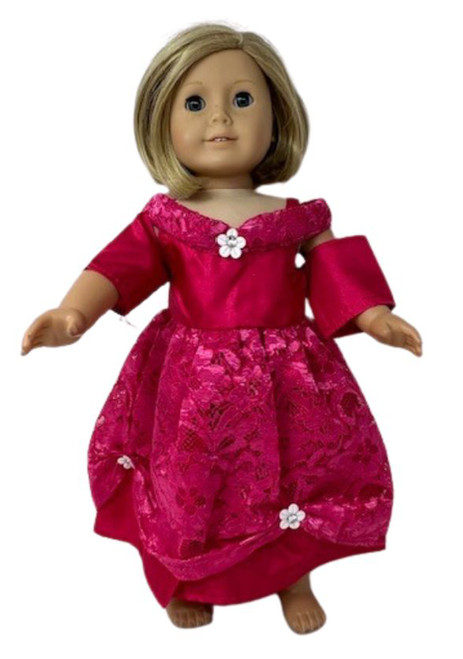 - Enchanting rose princess-style dress, complete with a delicate lace overskirt, perfect for dolls attending a royal castle event.