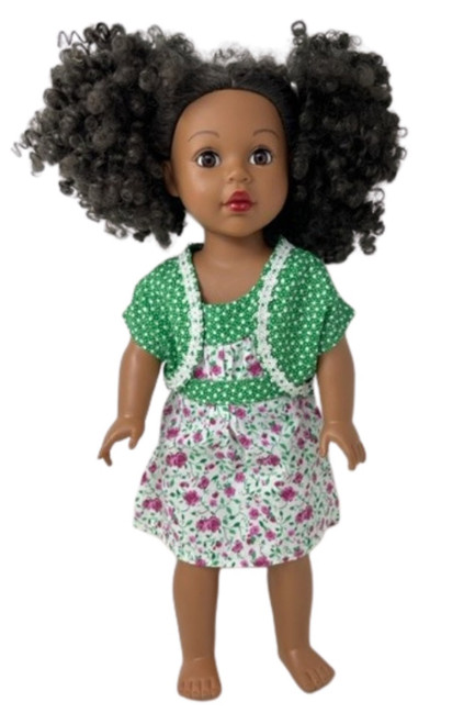 Versatile dress fits 18 inch girl dolls and 15-16 inch Cabbage Patch Kid dolls.