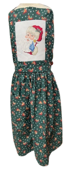 The standout feature is the beautifully crafted cross-stitch panel on the bib, showcasing Santa’s smiling face in intricate detail—a timeless design that adds a personal, handcrafted touch.